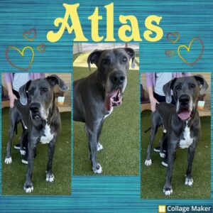 The definition of gentle giant? Well, that would be Atlas! This stunning man is the biggest love bug we’ve ever seen. He will find a way to sit on your lap no matter what. Atlas loves to play with toys, and to go on walks. He is amazing for his baths and can take his treats like a gentleman. He will need a little help learning how to walk on the leash better, and help getting on a potty routine in his new home. We think Atlas would thrive in a home that has Dane experience, and maybe even another doggie friend for him to play with. If you think your family is ready for ALOT of love in the form of a big goofy boy, please feel free to apply for him at www.clearfieldcountyspca.org today!