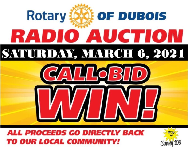 It's the 2021 DuBois Rotary Radio Auction on Sunny 106 set for Saturday, March 6th! Listen LIVE from 9-2p for your chance to win one of the many items in this year's auction.