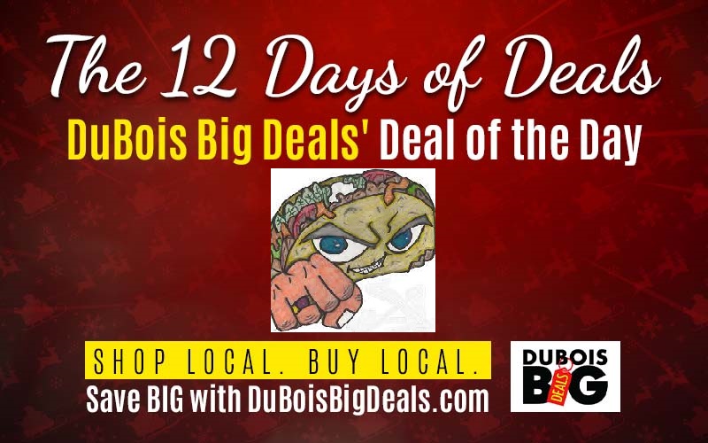 HomeLifestyleDay 10 of the 12 Days of DealsDay 10 of the 12 Days of DealsFri, December 16, 2022 by Marissa RigattiSHARE NOW Presented by DuBois Big DealsIt’s Day 10 of the 12 Days of DealsSave BIG on today’s deal from Not Your Typical Tacos in DuBois.Click HERE to save BIG while supplies last!