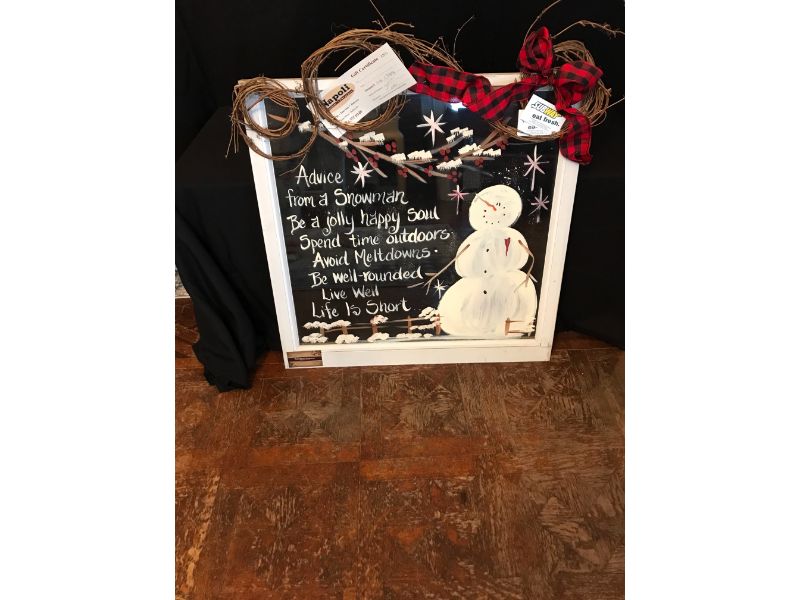 A Beautiful Hand Painted Snowman Window from Homespun Treasures, (2) Gift Certificates to Subway and a Gift Certificate to Napoli Pizzeria