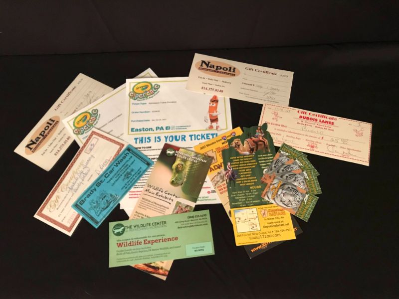 Two Tickets to Crayola Experience, Four Passes to Living Treasures Animal Park, a Pass to Refreshing Mountain Wildlife Experience, a Gift Certificate to DuBois Lanes, (2) Napoli Pizzeria Gift Certificates, a Gift Certificate to Roadside Cafe and Brady Street Car Wash