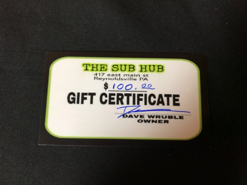 A gift certificate to The Sub Hub in Reynoldsville