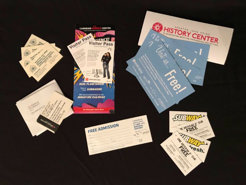 A Fun Filled Package with a Pass for Four to Carnegie Museum Art & History, Admission for Two to Carnegie Science Center, a Day Pass for Five to The Children’s Museum, Four Admission Passes to Heinz History Center, Four Passes to Phipps Conservatory, and Four Gift Certificates to Subway