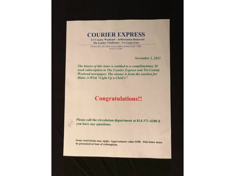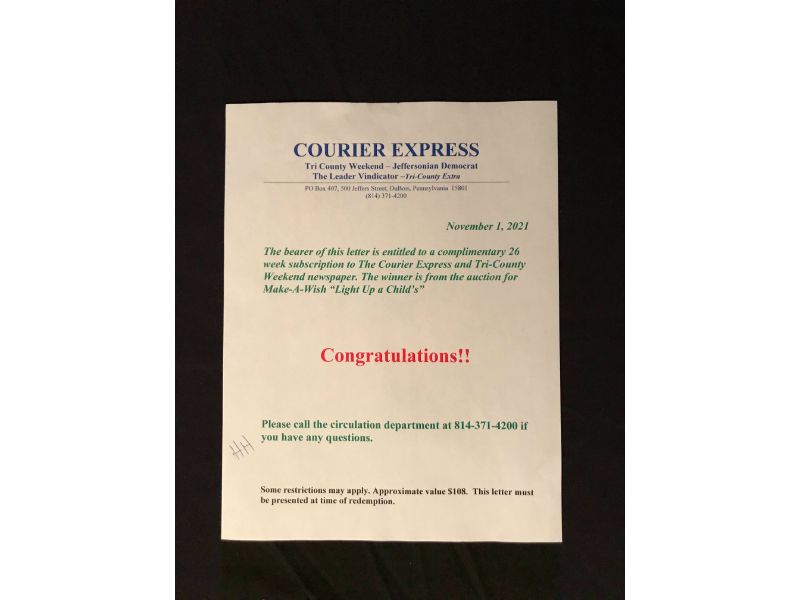 A 26 Week Subscription Donated by The Courier Express