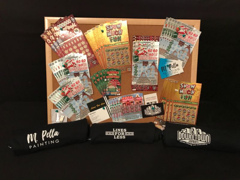 This Huge Lottery Board and T-Shirts were Donated by Lines for Less, M.Pella Painting, and Downtown Imprints
