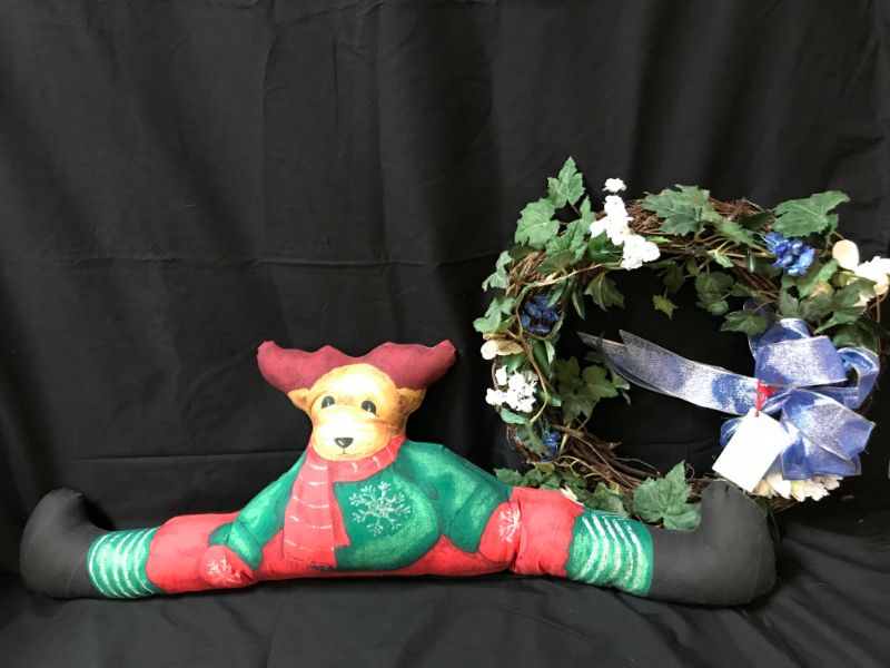 Handmade draft door and wreath donated by Jean Kite