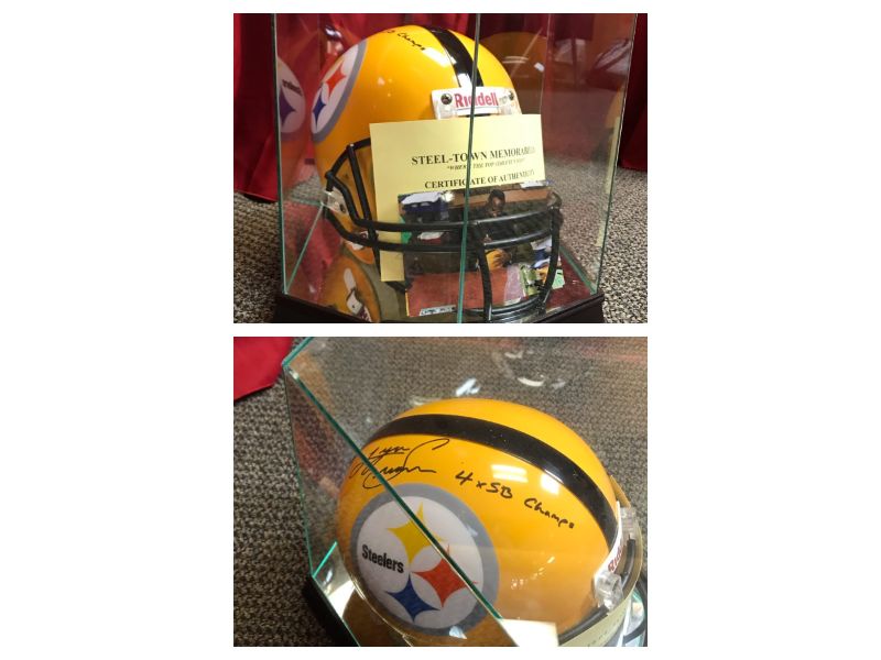 Yellow Steeler Helmet Signed by Lynn Swan With Authenticity Certificate and Picture Donated by Rose’s On Main