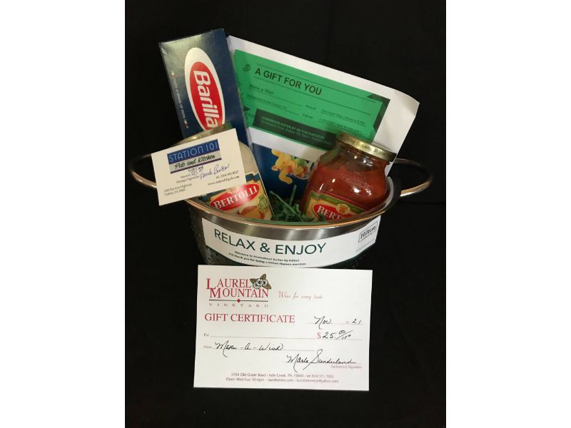 Enjoy Dinner with a Gift Certificate from Station 101, a Bottle of Wine from Laurel Mountain Winery, Along with a One Night Stay in a King Suite at Homewood Suites and a Pasta Set