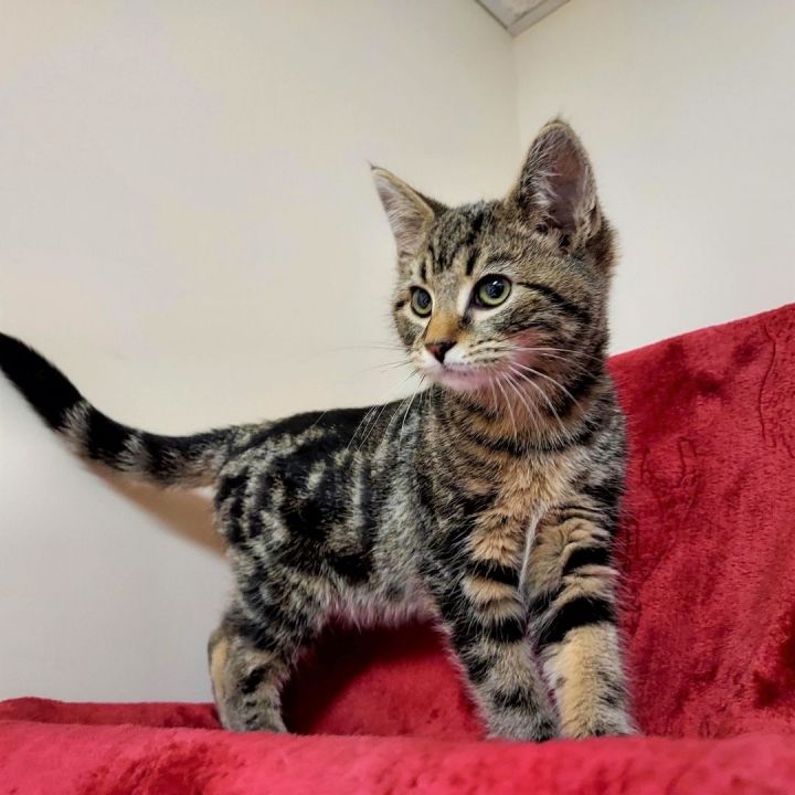 Beaker is a young Tabby kitten who was born in August. Beaker is your typical kitten who is playful, funny, and adventurous. Beaker has unique markings for a Tabby as he has a mixture of grey, blue, and silver colors with specks of browns and blacks.