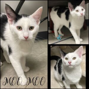 Hey my name is Moo Moo. I’m kind of a big deal around here. Who doesn’t love a cute, sassy little kitty who loves to cuddle?