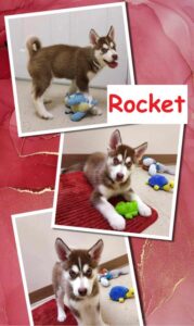 Rocket is a Siberian Husky. He was born at the shelter on November 16, 2023. Rocket is a very cute and funny little boy with lots of energy.