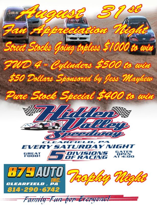 HomeLocalFan Appreciation NightFan Appreciation NightFri, August 30, 2019 by Marissa Rigatti SHARE NOW The Hidden Valley Speedway is racing every Saturday! Save on discounted tickets with DuBois Big Deals.