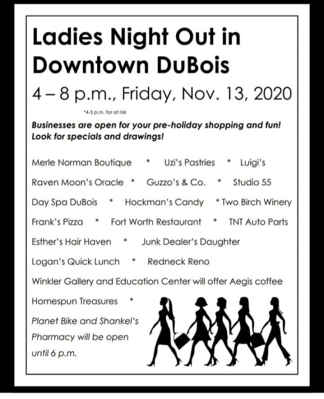 Shop in downtown DuBois Friday, November 13th from 4-8pm for some pre-holiday deals and specials!