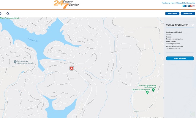 Treasure Lake, PA – Around 1,500 people were without power in the DuBois and Treasure Lake area on Sunday evening after a severe thunderstorm.