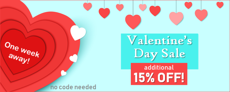 Valentine’s Day is just over one week away, and we want to help you find that perfect gift – for less, of course! Take an extra 15% off your order today only, no code needed, and find something special for that special someone.