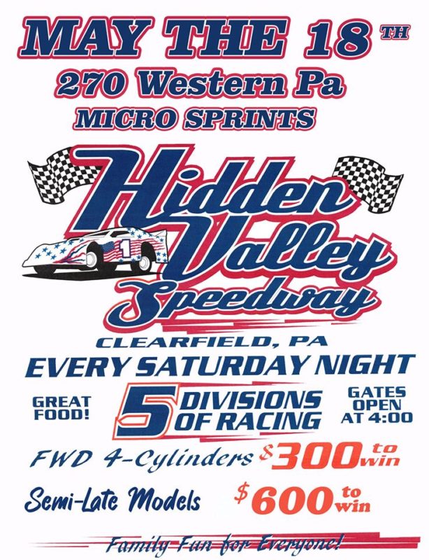 HomeLocalRacing this weekend in ClearfieldRacing this weekend in ClearfieldFri, May 17, 2019 by Marissa Rigatti SHARE NOW The Hidden Valley Speedway is racing every Saturday! Save on tickets with DuBois Big Deals here!