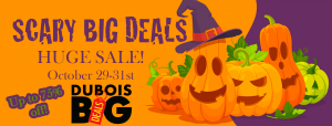 Shop SCARY Big Deals while supplies last Monday, October 29-October 31st at DuBois Big Deals!