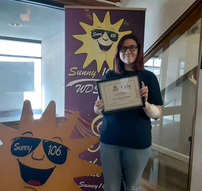 The Sunny Student of the Month for February is Nevaeh Lindemuth. Nevaeh is a tenth grade student in the Culinary Arts program at Jeff Tech.