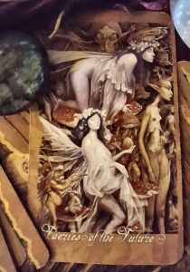 This week’s tarot reading includes the card,  “Faeries of the Future” which represents being here NOW, guidance, moving forward.