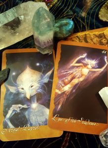 This week’s reading includes the cards, “Arval Parrot”, which signifies communication, and “ Lys of the Shadows, which signifies self-esteem and healing.